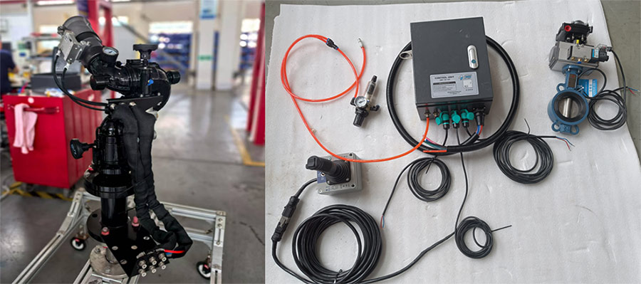 Пневматичен монитор на пожар, представен като компактен размер на монтажа, ниска цена на двигателя, леко тегло, вертикален обхват на пътуване от -40 ° - +90 °, максимален хоризонтален обхват от 320º. С тези характеристики пневматичният монитор на пожар ще играе по -ефективна роля в приложението.